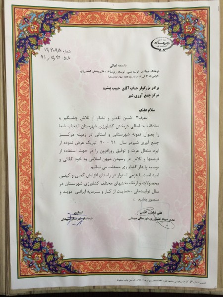 بازديد جناب مهندس شکوهي مديريت تامين و بهبود کيفيت شير خام شرکت پگاه فارس از سکوي شير کوشکهزار